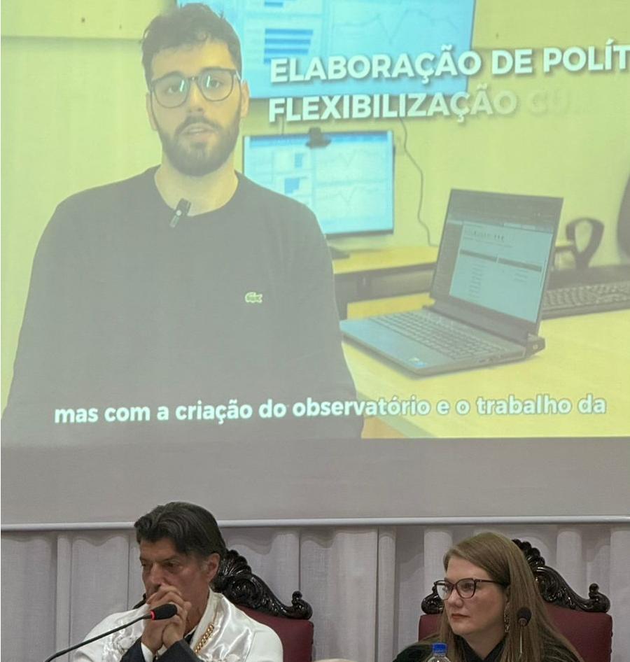 Na Sessão Solene foi apresentado um vídeo de prestação de contas da gestão onde, em uma passagem, falei sobre o Observatório de Dados de Evasão e Baixa Procura, iniciativa coordenada por mim na CECD.